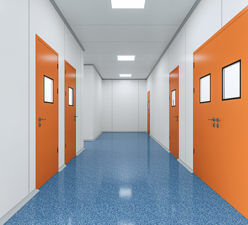 根據《潔凈廠房設計規范》車間的墻體和吊頂必須采用不產塵、不積塵表面平滑的材料施工,并且不能在車間中存在死角。采用凈化廠房施工專用彩板,基板頂板采用寶鋼0.4的鋼板,芯材密度達到14kg/m3,鋁材采用華聯專用鋁型材,為提高凈化間的使用壽命,并達到美觀大方的效果,所有鋁型材進行電泳處理。